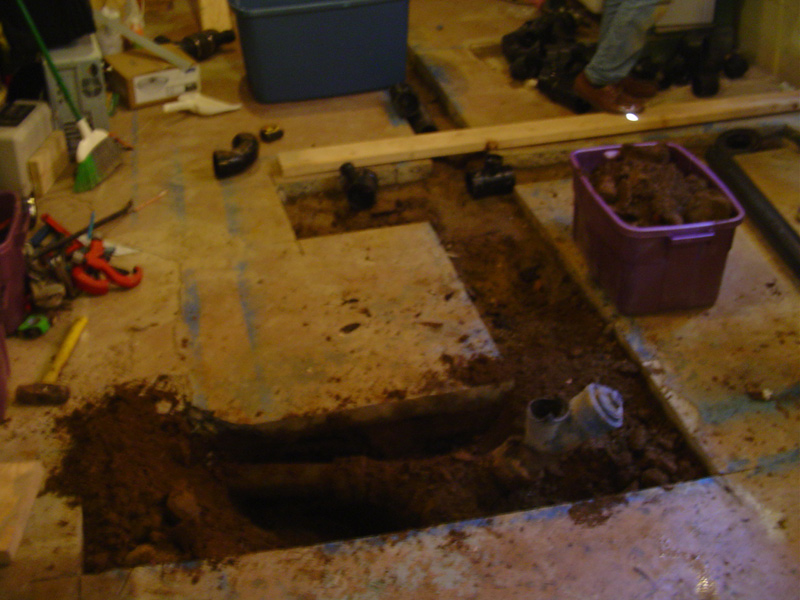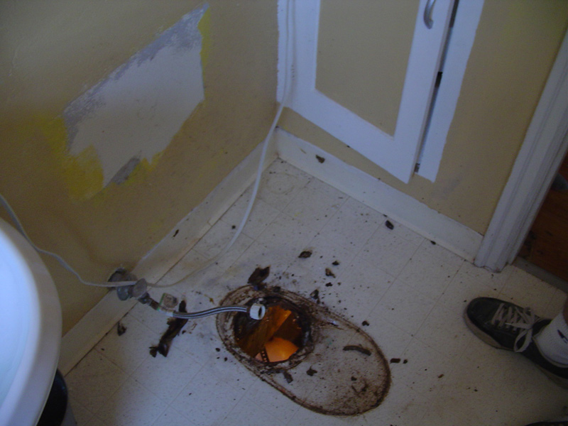 Concrete cut and cleared for the new sewer pipes. ![]() But first we have to remove the old sewer system ![]() View from the upstairs bathroom to the old pipe ![]() Since we are replacing all sewer lines and tucking them in close in the joists we had to end up opening up all the cabinet walls. But hey we used that time to wire in a garbage disposal ![]() Oh yeah we are replacing all the water pipes also. So tons of small holes like this for the pex lines. |